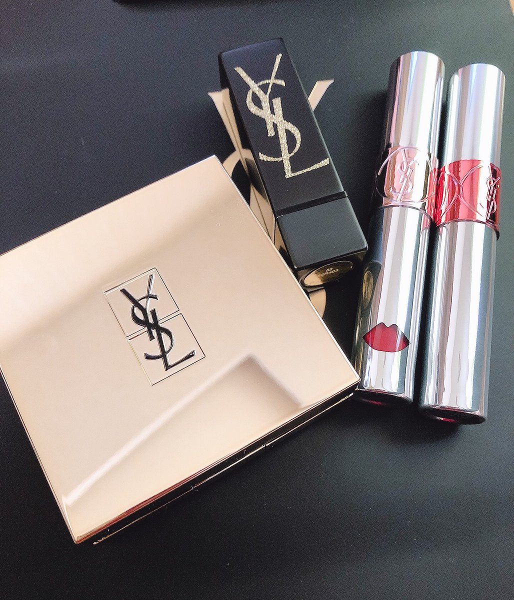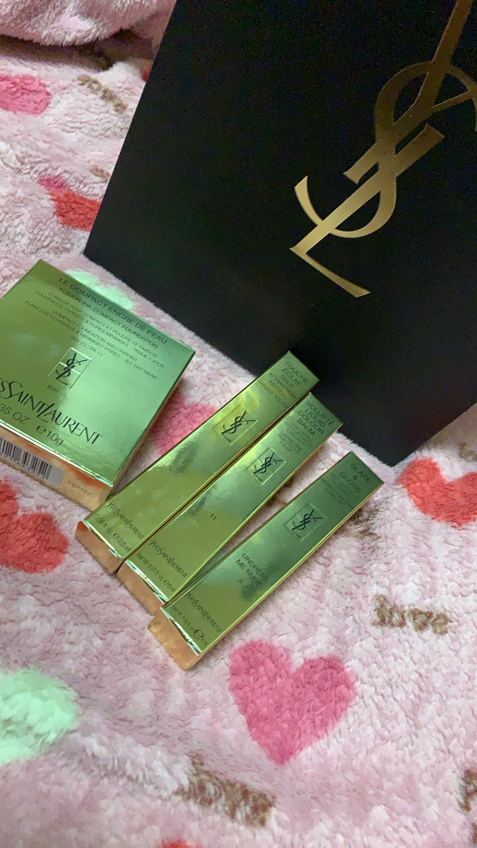 yslの福袋届いたー!ファンデとリップ3本。色も全部いけるやつだったので当たりや。特にヴォリュプテシャインの92番うれしい😍