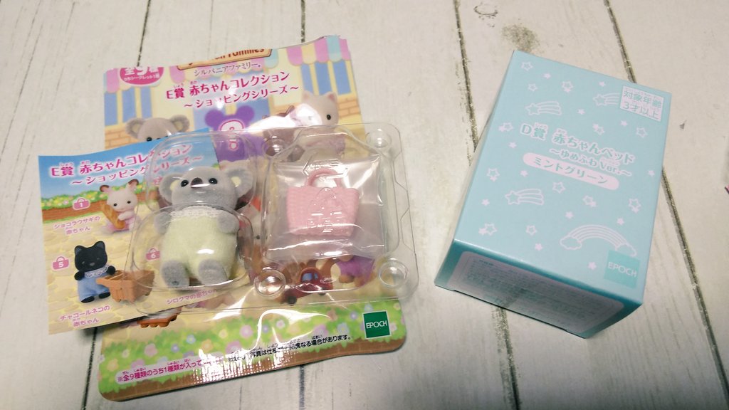 ファミマで始まったシルバニアくじ。B賞が欲しいな~と思って3回引いたけど1ベット、2ベイビーだった。