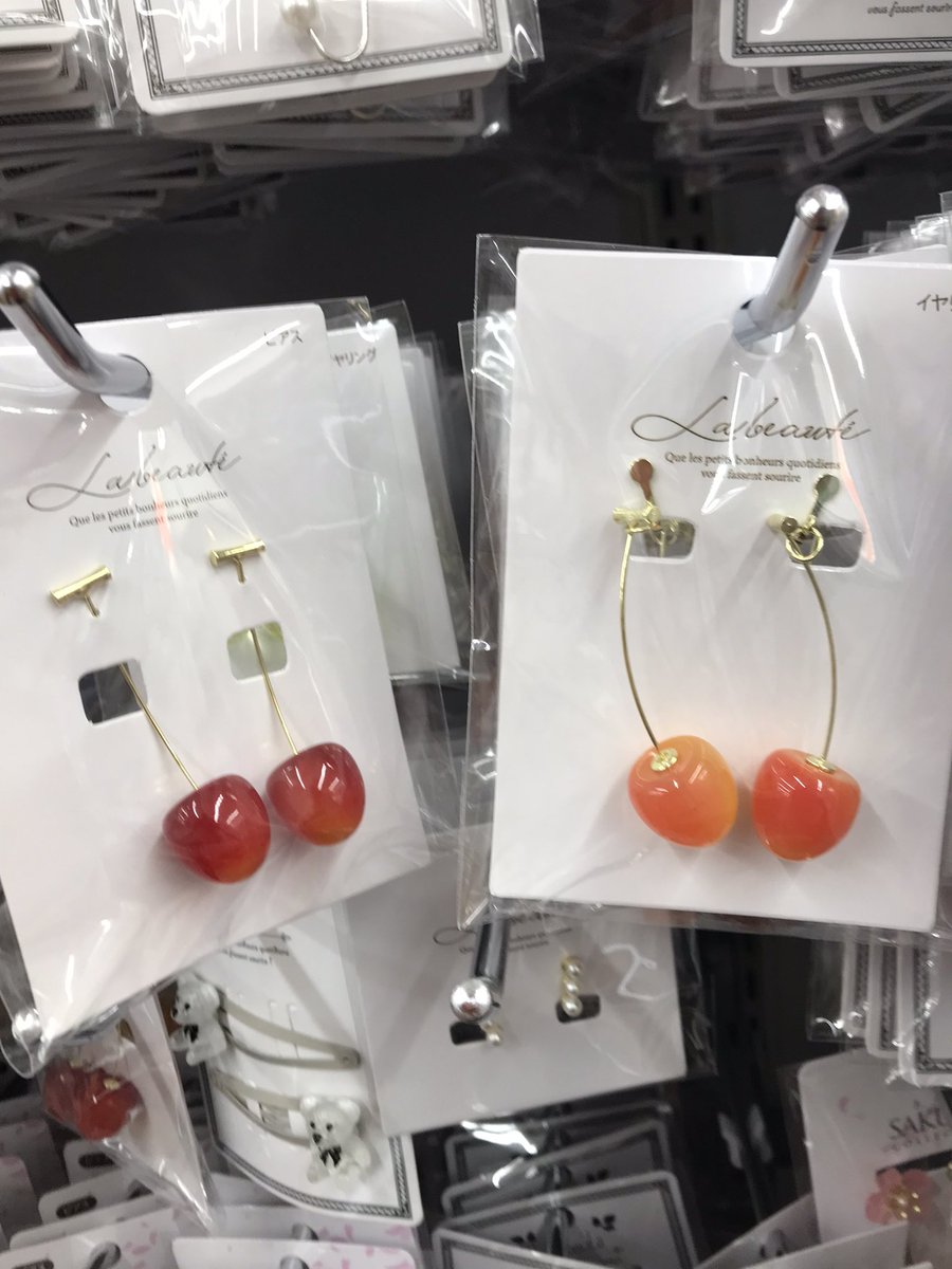 仕事終わりにキャンドゥに小銭入れを買いに立ち寄った所、アクセサリーコーナーにかわいいイヤリングとピアスを見つけてしまいました。